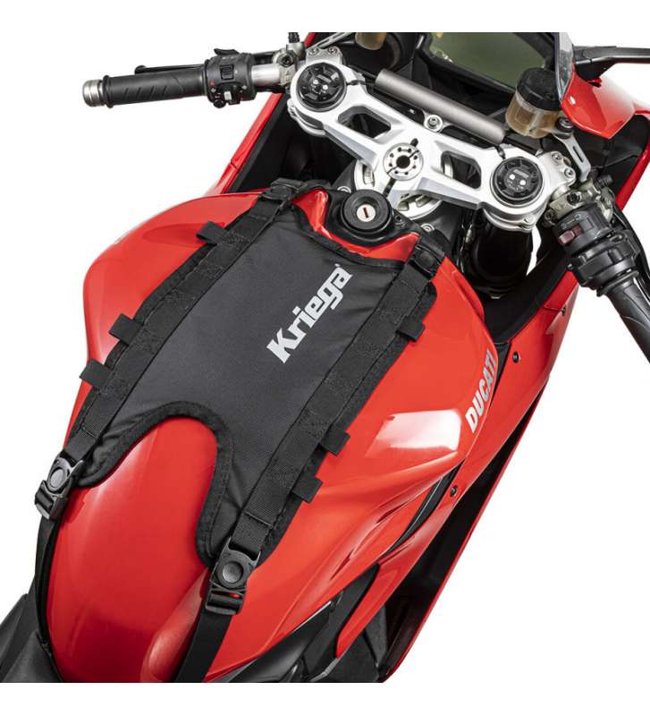 Con el soporte de equipaje Kriega Tank Adapter puede convertir una bolsa de equipaje Kriega US-Drypack en una bolsa sobre depósito. Compatible con las bolsas Drypack US-5, US-10 y US-20, además de las bolsas Adventure OS-6 y OS-12. Ajuste universal para la mayoría de las marcas y tipos de motos, incluidos los modelos con depósitos de metal y plástico. Fácil de colocar con trabillas para tija en la parte delantera y almohadillas de velcro debajo del asiento en la parte trasera. Base en material antiarañazos y antideslizante que mantiene la mochila firmemente en su posición y las hebillas de liberación rápida permiten acceder fácilmente al depósito de combustible.