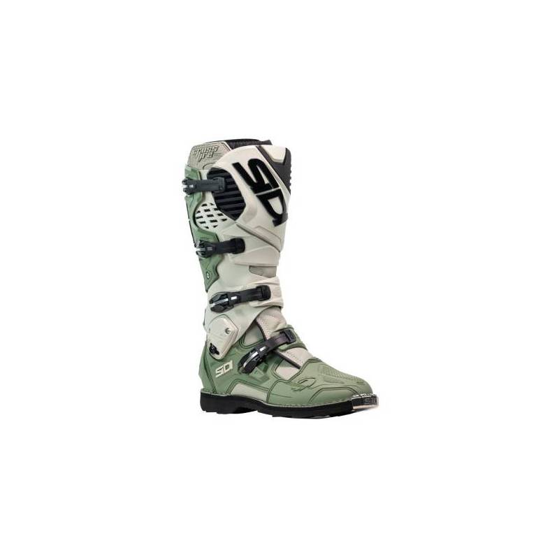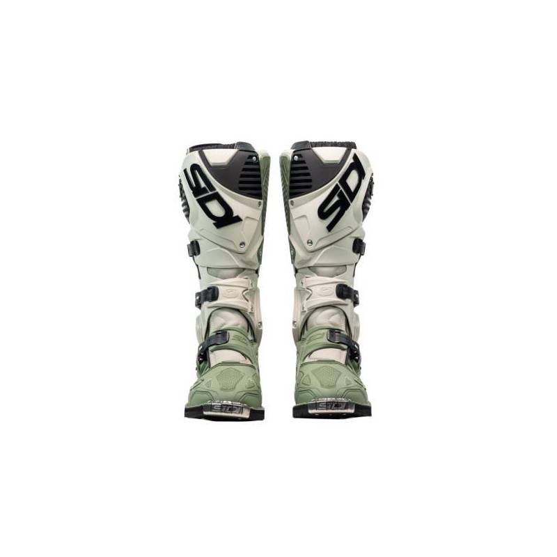 Las Botas Sidi Crossfire 3 en verde militar y arena son la elección definitiva para los pilotos de motocross y enduro que buscan protección y un ajuste preciso. Confeccionadas en Technomicro, ofrecen resistencia al desgaste y al agua sin comprometer la ligereza.
