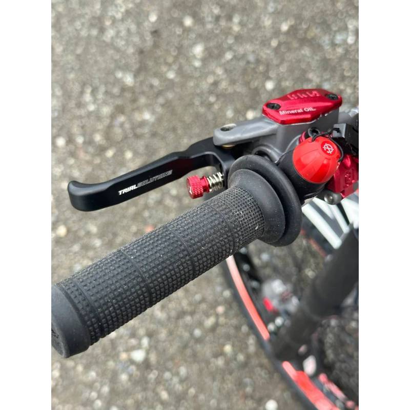 La maneta optimizada de TrialSolutions proporciona un embrague más suave y un punto de enganche más preciso, mientras que el diseño de nuestro freno ofrece mayor potencia y modulación. ¿El resultado? Menos fatiga, mejor control y una conducción más suave. Nuestro diseño patentado de un solo dedo mejora la sensación y ofrece una mayor variedad de ajustes para adaptarse a diferentes tamaños de mano, a la vez que reduce el esfuerzo en los brazos.
